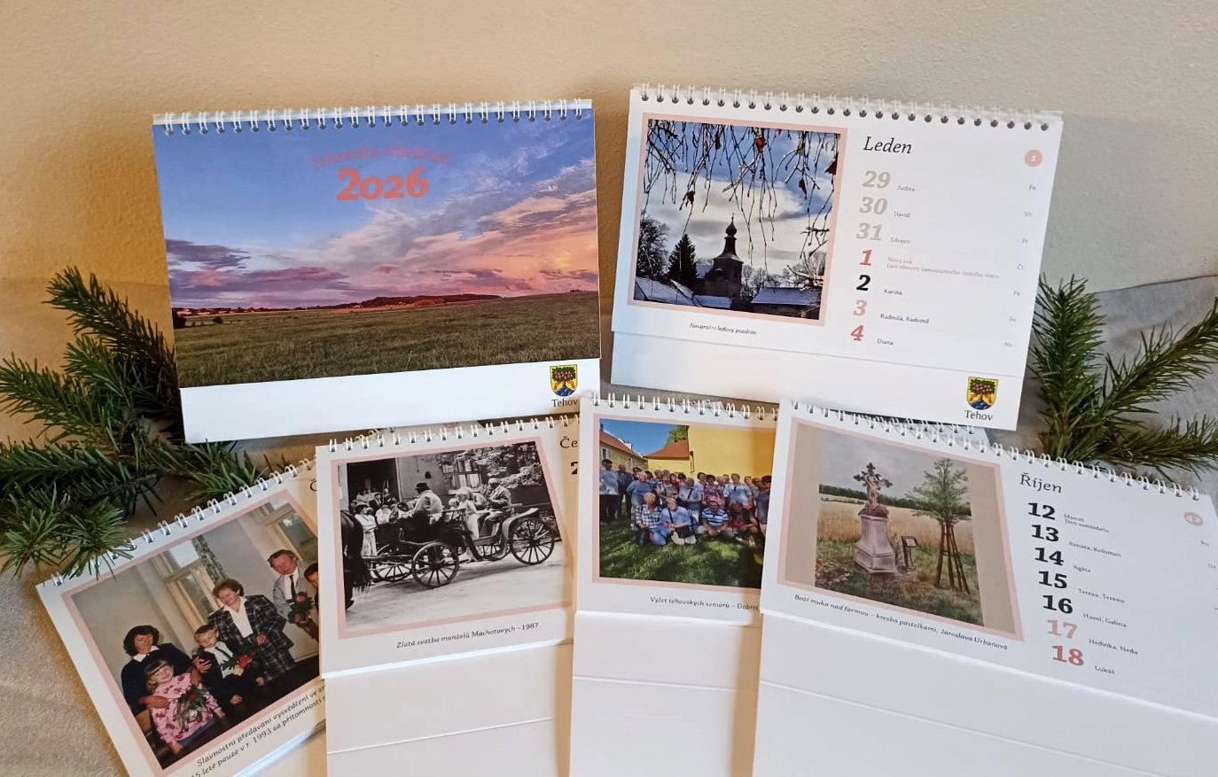 Nový stolní kalendář "Tehovská ohlédnutí 2026" sestavený ze současných i historických tehovských fotografií můžete zakoupit za 100 Kč u nás v obecní knihovně nebo na obecním úřadě. Pokud nás nezastihnete v provozní době, lze se domluvit na tel. 728 277 355 na jiných možnostech.